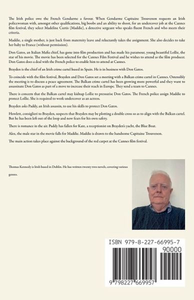 The Irish police owe the French Gendarme a favour. When Gendarme Capitaine Trouvenon requests an Irish policewoman with, amongst other qualifications, big boobs and an ability to shoot, for an undercover job at the Cannes film festival, they select Madeline Curtis (Maddie), a detective sergeant who speaks fluent French and who meets their criteria. Maddie, a single mother, is just back from maternity leave and reluctantly takes the assignment. She also decides to take her baby to France (without permission). Don Gatos, an Italian Mafia chief, has gone into film production and has made his paramour, young beautiful Lollie, the star of his movie. The movie has been selected for the Cannes Film Festival and he wishes to attend as the film producer. Don Gatos does a deal with the French police to enable him to attend at Cannes. Brayden is the chief of an Irish crime cartel based in Spain. He is in business with Don Gatos. To coincide with the film festival, Brayden and Don Gatos set a meeting with a Balkan crime cartel in Cannes. Ostensibly the meeting is to discuss a peace agreement. The Balkan crime cartel has been growing more powerful and they want to assassinate Don Gatos as part of a move to increase their reach in Europe. They send a team to Cannes. There is concern that the Balkan cartel may kidnap Lollie to pressurise Don Gatos. The French police assign Maddie to protect Lollie. She is required to work undercover as an actress. Brayden asks Paddy, an Irish assassin, to use his skills to protect Don Gatos. Howlett, consiglieri to Brayden, suspects that Brayden may be plotting a double cross so as to align with the Balkan cartel. But he has been left out of the loop and now fears for his own safety. There is romance in the air. Paddy has fallen for Kate, a receptionist on Brayden's yacht, the Blue Boat. Alex, the male star in the movie falls for Maddie. Maddie is drawn to the handsome Capitaine Trouvenon. The main action takes place against the background of the red carpet at the Cannes film festival.