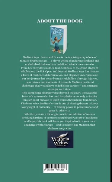 Madison Keys is more than a world-class athlete - she is a symbol of resilience, compassion, and the unshakable belief that dreams are worth chasing.In Madison Keys: Power and Grace, acclaimed biographer Janet V. Roberts traces the remarkable journey of a girl from Rock Island, Illinois, who dared to step onto the global stage of professional tennis at just fourteen years old. With a game built on explosive power and a personality rooted in humility, Madison quickly rose through the ranks, capturing the attention of fans and the respect of opponents.Yet her story is not just about trophies and scorelines. It is about setbacks and comebacks. Injuries that tested her resolve. Grand Slam finals that slipped away. The emotional weight of "almost" - and the extraordinary resilience it takes to keep going. Madison's career illuminates a truth far bigger than sport: greatness is not measured by flawless victories, but by how you rise after defeat.Beyond the baseline, Madison has become a role model who champions kindness as a force for change. Through her foundation, Kindness Wins, she has used her platform to uplift others, proving that true power lies in grace, compassion, and integrity.With vivid storytelling and deep insight, Roberts captures Madison's triumphs, struggles, and legacy in a way that speaks to both passionate tennis fans and anyone seeking inspiration to overcome challenges in their own life.Madison Keys: Power and Grace is a story of courage, determination, and heart - the portrait of an athlete who has redefined what it means to win.