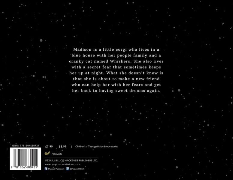 Madison is a little corgi who lives in a blue house with her people family and a cranky cat named Whiskers. She also lives with a secret fear that sometimes keeps her up at night. What she doesn't know is that she is about to make a new friend who can help her with her fears and get her back to having sweet dreams again.