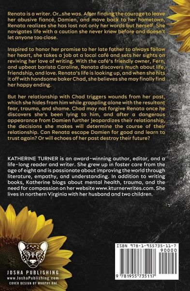 Renata is a writer. Or...she was. After finding the courage to leave her abusive fiancé, Damien, and move back to her hometown, Renata realizes she has lost not only her words but herself. She navigates life with a caution she never knew before and doesn't let anyone too close. Inspired to honor her promise to her late father to always follow her heart, she takes a job at a local café and sets her sights on reviving her love of writing. With the café's friendly owner, Fern, and upbeat barista Caroline, Renata discovers much about life, friendship, and love. Renata's life is looking up, and when she hits it off with handsome baker Chad, she believes she may finally find her happy ending. But her relationship with Chad triggers wounds from her past, which she hides from him while grappling alone with the resultant fear, trauma, and shame. Chad may not forgive Renata once he discovers she's been lying to him, and after a dangerous appearance from Damien further jeopardizes their relationship, the decisions she makes will determine the course of their relationship. Can Renata escape Damien for good and learn to trust again? Or will echoes of her past destroy their future?