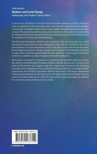 In this book, the history of the Brazilian Psychiatric Reform is told by one of its main protagonists. In the early 1980s, there were about 80 thousand people admitted to psychiatric hospitals in Brazil, with average lengths of hospital stay of approximately 25 years. The psychiatric reform process that took place in the country was responsible for closing more than 60 thousand beds in mental asylums, most of them characterized by conditions of violence and abandonment.
