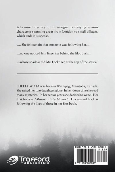 A fictional mystery full of intrigue, portraying various characters spanning areas from London to small villages, which ends in suspense. .... She felt certain that someone was following her... ...no one noticed him lingering behind the lilac bush... ...whose shadow did Mr. Locke see at the top of the stairs?