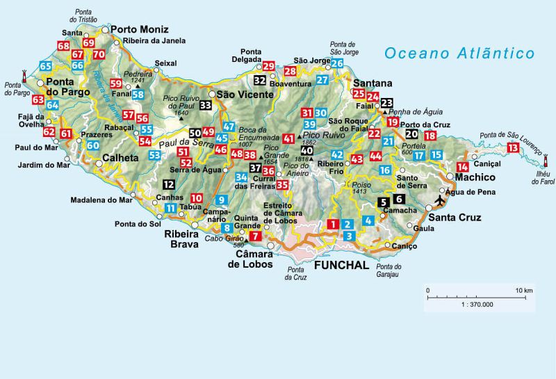 D'étroits canaux d'irrigation, appelées levadas, traversent l'île dans tous les sens. Les chemins aménagés pour les entretenir permettent de partir à la découverte de Madère sans avoir à surmonter aucune dénivelée importante : passage par des terrasses artistiquement modelées, traversées d'impressionnantes gorges et de vallées encore intactes avec une végétation subtropicale à feuilles persistantes. Cette île volcanique, avec son massif central de presque 1900 m d'altitude, offre également des itinéraires de randonnée alpins, comme le parcours spectaculaire façonné dans la roche qui monte du Pico do Arieiro au Pico Ruivo - la randonnée royale de l'île. Les discrets sentiers de bergers et les « veredas », anciens chemins de communication qui, jusqu'il y a encore quelques décennies, constituaient le seul moyen de d'accéder aux bourgs isolés, sont agréables.