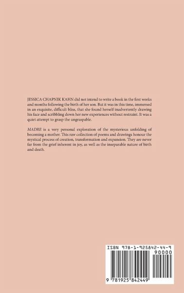 JESSICA CHAPNIK KAHN did not intend to write a book in the first weeks and months following the birth of her son. But it was in this time, immersed in an exquisite, difficult bliss, that she found herself inadvertently drawing his face and scribbling down her new experiences without restraint. It was a quiet attempt to grasp the ungraspable. MADRE is a very personal exploration of the mysterious unfolding of becoming a mother. This raw collection of poems and drawings honour the mystical process of creation, transformation and expansion. They are never far from the grief inherent in joy, as well as the inseparable nature of birth and death.