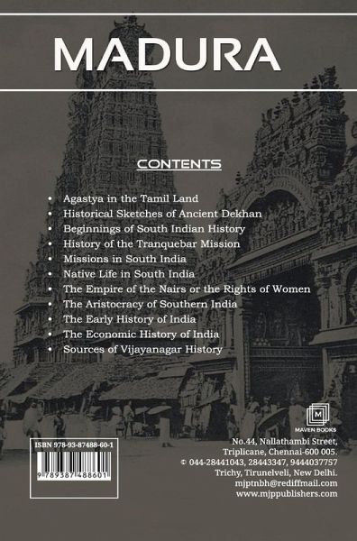 The chief features of his work were its sections on the political and revenue of the district; and these have been freely utilized in the present volume. The early part of the former of them, however, has naturally been largely superseded by the discoveries due to the progress of epigraphy in recent years; and limites of space have necessitated the ruthless condensation of much of Mr. Nelson's picturesque account of the Nayakkan dynasty in the latter part of the same section. Most of the rest of the book is new. It is arranged on the system followed in the other District Gazetteers of the new series now being brought out, and statistical matter appears in a separate Appendix which is to be revised decennially, after each census. Under instruction, the volume does not deal with the Ramnad and Sivaganaga Zamindaris, which are to be transferred to another district, and treats the area which will be included in the proposed new Nilakkottai taluk as though this taluk were already in existence. The absence of statistics for this latter tract has, however, in some cases prevented the consistent carrying out of this method of referring to it.