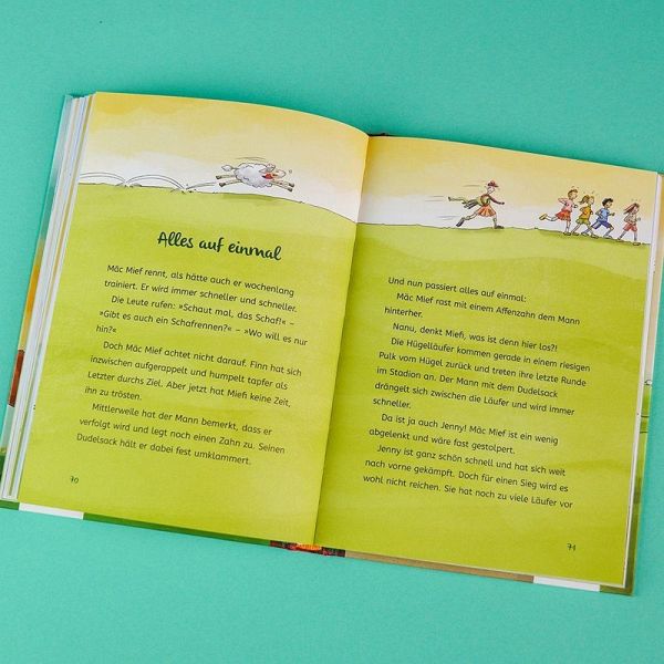 Was ist heute bloß auf Mäc Miefs Wiese los? Ständig fliegt dem Schaf etwas um die Ohren: Heusäcke, geblümte Gummistiefel - sogar ganze Baumstämme werden über seine schöne und normalerweise ausgesprochen ruhige Weide geschleudert! Familie Olifant trainiert für die Highland Games, das traditionelle schottische Volksfest. Doch nicht nur Dudelsackspieler treiben sich dort herum: Ein Dieb stiehlt die Geldbörsen der Familie Olifant! Zum Glück sind Mäc Mief und Hütehund Bonnie mit von der Partie. Die beiden fackeln nicht lange und eine abenteuerliche Verfolgungsjagd beginnt ....