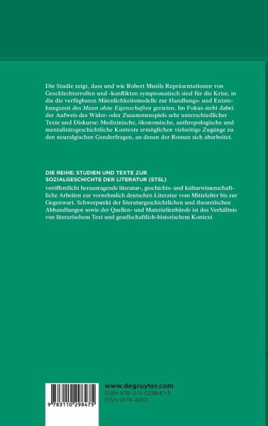 Die Studie untersucht die Modalitäten, unter denen Männlichkeiten im Mann ohne Eigenschaften erscheinen. Sie zeigt erstmals systematisch, dass und wie Robert Musils Repräsentationen von Geschlechterrollen und -konflikten symptomatisch sind für die Krise, in die die verfügbaren Männlichkeitsmodelle zur Handlungs- und Entstehungszeit des Romans gerieten. Dabei richtet sich das Frageinteresse der intertextuell, aber auch quellenkritisch orientierten Lektüren insbesondere darauf, ob Musils Figurengestaltungen zu seiner Theorie der Eigenschafts- oder Gestaltlosigkeit wirklich in einem einfach nur äquivalenten Verhältnis stehen oder - wie für Paradigmenwechsel typisch - nicht doch in einem verwickelteren. Im Fokus steht so der Aufweis des Wider- oder Zusammenspiels sehr unterschiedlicher Texte und Diskurse: Medizinische, ökonomische, anthropologische und mentalitätsgeschichtliche Kontexte ermöglichen vielseitige Zugänge zu den besonders neuralgischen Genderfragen, an denen der Mannohne Eigenschaften sich abarbeitet.