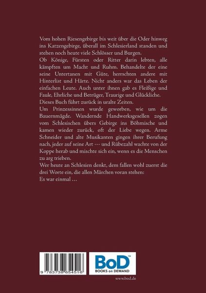 Vom hohen Riesengebirge bis weit über die Oder hinweg ins Katzengebirge, überall im Schlesierland standen und stehen noch heute viele Schlösser und Burgen. Ob Könige, Fürsten oder Ritter darin lebten, alle kämpften um Macht und Ruhm. Behandelte der eine seine Untertanen mit Güte, herrschten andere mit Hinterlist und Härte. Nicht anders war das Leben der einfachen Leute. Auch unter ihnen gab es fleißige und faule, ehrliche und Betrüger, traurige und glückliche. Dieses Buch führt zurück in uralte Zeiten. Um Prinzessinnen wurde geworben, wie um die Bauernmägde. Wandernde Handwerksgesellen zogen vom Schlesischen übers Gebirge ins Böhmische und kamen wieder zurück, oft der Liebe wegen. Arme Schneider und alte Musikanten gingen ihrer Berufung nach, jeder auf seine Art --- und Rübezahl wachte von der Koppe herab und mischte sich ein, wenn es die Menschen zu arg trieben.Wer heute an Schlesien denkt, dem fallen wohl zuerst die drei Worte ein, die allen Märchen voran stehen:Es war einmal ..