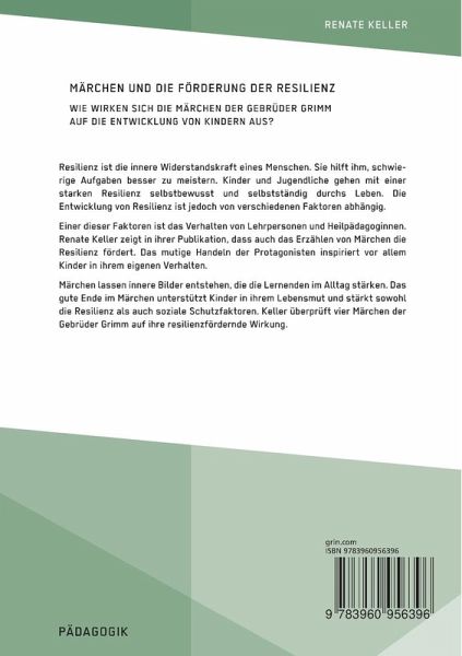 Resilienz ist die innere Widerstandskraft eines Menschen. Sie hilft ihm, schwierige Aufgaben besser zu meistern. Kinder und Jugendliche gehen mit einer starken Resilienz selbstbewusst und selbstständig durchs Leben. Die Entwicklung von Resilienz ist jedoch von verschiedenen Faktoren abhängig.Einer dieser Faktoren ist das Verhalten von Lehrpersonen und Heilpädagoginnen. Renate Keller zeigt in ihrer Publikation, dass auch das Erzählen von Märchen die Resilienz fördert. Das mutige Handeln der Protagonisten inspiriert vor allem Kinder in ihrem eigenen Verhalten.Märchen lassen innere Bilder entstehen, die die Lernenden im Alltag stärken. Das gute Ende im Märchen unterstützt Kinder in ihrem Lebensmut und stärkt sowohl die Resilienz als auch soziale Schutzfaktoren. Keller überprüft vier Märchen der Gebrüder Grimm auf ihre resilienzfördernde Wirkung.Aus dem Inhalt:- Selbstwirksamkeit;- Pädagogik;- emotionale Kompetenz;- Schneewittchen;- Froschkönig;- Frau Holle;- Rotkäppchen