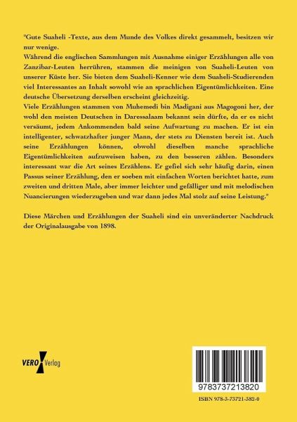 "Gute Suaheli -Texte, aus dem Munde des Volkes direkt gesammelt, besitzen wir nur wenige.