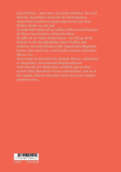 Geschichten - man muss sie nicht erfinden. Sie sind überall, manchmal versteckt im Verborgenen, manchmal tauchen sie ganz unerwartet aus dem Nichts direkt vor dir auf.So jedenfalls habe ich es selbst erfahren und begann, all diese Geschichten aufzuschreiben.Es gibt sie in vielen Situationen - im Alltag, beim Fahren in der Straßenbahn, beim Treffen mit anderen, bei erfreulichen oder ärgerlichen Begebenheiten oder auch nur, weil wieder einmal schlechtes Wetter ist.Dann sind sie plötzlich da: fremde Wesen, unbekannte Gegenden, unvermutete Begebenheiten.Und obwohl wir Menschen ziemlich genau über unsere Welt Bescheid wissen und darüber, wie es in ihr zugeht, könnte manches doch auch ganz anders gewesen sein...Herausgeber: Hans-Jürgen Sträter, Adlerstein Verlag