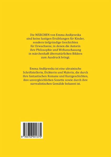 Diese MÄRCHEN tragen stilistisch und inhaltlich den für Emma Andijewska ureigensten Stempel, durch den sich ihre Phantasie und ihr Hang zum Außergewöhnlichen auch sprachlich äußern. Ungewöhnliche Zauberwesen wie etwa ein Fisch, der spricht, oder eine Idee, die körperliche Gestalt annimmt, bringen ihre persönliche Philosophie zum Ausdruck. Ihre Märchen sind keine Geschichten für Kinder, wie Andersens oder Grimms Märchen, es sind bildhafte Darstellungen ihrer Weltanschauung für Erwachsene. Jedes Märchen endet mit einem kurzen Dialog zwischen der Konservendose und dem Schakal, meist in Form eines Streitgesprächs, in dem der Verlauf der Geschichte von beiden Seiten kommentiert wird. Gerade das macht ihre Märchen so einzigartig und interessant.Die vorliegende deutsche Fassung des ukrainischen Originals stammt aus der Feder von Irena Katschaniuk-Spiech, Neuphilologin und Übersetzerin von Werken aus der ukrainischen Literatur ins Deutsche, so von Ivan Kotljarevskyj, Dmytro Pavlytschko, Taras Schevtschenko, Lesja Ukrajinka u.v.a.