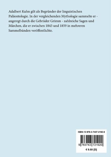 Adalbert Kuhn gilt als Begründer der linguistischen Paläontologie. In der vergleichenden Mythologie sammelte er - angeregt durch die Gebrüder Grimm - zahlreiche Sagen und Märchen, die er zwischen 1843 und 1859 in mehreren Sammelbänden veröffentlichte.