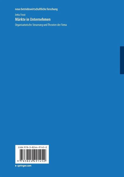 Jetta Frost untersucht die Rolle marktlicher Steuerungsmechanismen innerhalb des Steuerungsrepertoires für Unternehmen. Sie erklärt die Wechselwirkungen zwischen steuerungsrelevanten Gestaltungsvariablen und Steuerungsmechanismen sowie zwischen verschiedenen Formen marktlicher und nicht-marktlicher Steuerung in Unternehmen. Insbesondere zeigt sie, welche Mechanismen in welcher Weise zur Organisation der Wissensmanagementaufgabe beitragen.