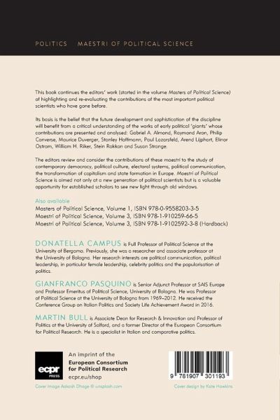 This book continues the editors' work (started in the volume "Masters of Political Science") of highlighting and re-evaluating the contributions of the most important political scientists who have gone before. Its basis is the belief that the future development and sophistication of the discipline will benefit from a critical understanding of the works of early political "giants" whose contributions are presented and analysed: Gabriel A. Almond, Raymond Aron, Philip Converse, Maurice Duverger, Stanley Hoffmann, Paul Lazarsfeld, Arend Lijphart, Elinor Ostrom, William H. Riker, Stein Rokkan and Susan Strange. The editors review and consider the contributions of these maestri to the study of contemporary democracy, political culture, electoral systems, political communication, the transformation of capitalism and state formation in Europe. Maestri of Political Science is aimed not only at a new generation of political scientists but is a valuable opportunity for established scholars to see new light through old windows.