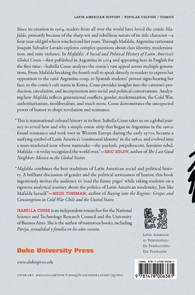 In Mafalda: A Social and Political History of Latin America's Global Comic Isabella Cosse examines the history, political commentary, and influence of the world-famous comic character Mafalda from her Argentine origins in 1964 to her global reach in the 1990s.