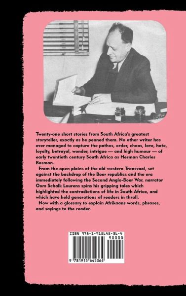 Twenty-one short stories from South Africa's greatest storyteller, exactly as he penned them. No other South African writer has ever managed to capture the pathos, order, chaos, love, hate, loyalty, betrayal, wonder, intrigue - and high humour - as Herman Charles Bosman. From the open plains of the old western Transvaal, set against the backdrop of the Boer republics and the era immediately following the Second Anglo-Boer War, narrator Oom Schalk Lourens spins his gripping tales which highlighted the contradictions of life in South Africa, and which have held generations of readers in thrall. Now with a glossary to explain Afrikaans words, phrases, and sayings to the reader.
