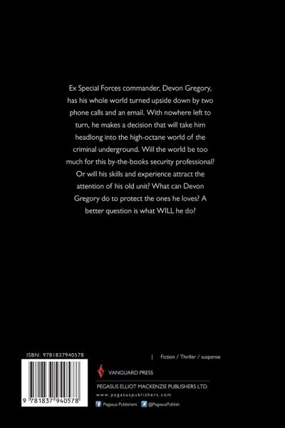 Ex Special Forces commander, Devon Gregory, has his whole world turned upside down by two phone calls and an email. With nowhere left to turn, he makes a decision that will take him headlong into the high-octane world of the criminal underground. Will the world be too much for this by-the-books security professional? Or will his skills and experience attract the attention of his old unit? What can Devon Gregory do to protect the ones he loves? A better question is what WILL he do?