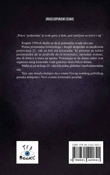 ¿Pravo 'podzemlje' je uvek gore, a dole, pod zemljom su mrtvi i raj." Krajem 1990-ih desilo se da je podzemlje svuda oko nas. Prema procenama kriminologa i drugih eksperata za nezakonita poslovanja 21. vek ¿e biti era kriminala. Te procene su toliko pesimisti¿ke da se predvi¿a da ¿e kriminalci, zavladati svetom, ako ih dr¿ave u tome ne spre¿e. Procenjuje se da danas realni svet organizovanog kriminala vredi godi¿nje skoro bilion dolara. Mafija je jö na kraju 20. veka bila jedna, globalna i interkontinentalna sila. Nije zato nimalo slüajno da u vreme Novog svetskog politi¿kog poretka dobijemo i Novi svetski kriminalni poredak.