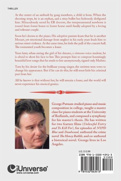 At the center of an ambush by gang members, a child is born. When the shooting stops, he is an orphan, and a stray bullet has hideously disfigured him. Miraculously saved by ER doctors, the temperamental newborn is tossed from foster home to foster home until finally adopted by a loving and tolerant couple. Soon hes drawn to the piano. His adoptive parents learn that he is another Mozart, yet emotional damage from neglect in his early years leads him to serious street violence. At the same time, he feels the pull of the concert hall. The tormented youth becomes a loner. Years later, when seeing the girl of his dreams, a virtuoso voice student, he is afraid to show his face to her. This prompts him to compose hauntingly beautiful love songs that he sends to her anonymously, signed only Mafisto. Torn by his desire for the brilliant young singer, the smitten teen vows to change his appearance. But if he can do this, he still must hide his criminal past from her. All he knows is that without her, he will remain a loner, and the world will never experience his musical genius.