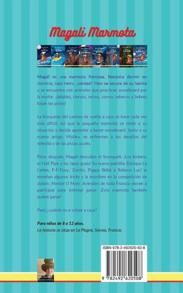 Magali: ¡Una marmota francesa que sale de noche para hacer deporte con sus amigos de la montaña! Magali es expulsada de la hibernación y lanzada en un mundo de animales que practican snowboard. ¿Por qué? Porque Puppy Bébé fue en busca de cerezas y, sin darse cuenta, ¡la desenterró! Sus nuevos amigos, Enrique La Liebre, F-F-Foxy, Zorrito, Puppy Bébé y Rebeco Luc, prometen llevársela a casa esa noche después de hacer snowboard. Pero, llevados por la diversión de las pistas, se olvidan de ella. La pequeña marmota tiene que encontrar el camino de vuelta a casa. Pero en lugar de eso, ¡se embarca en una loca aventura en la que hace nuevos amigos y aprende a hacer snowboard! Una serie sobre cómo aprender a ser independiente, confiar en los instintos y hacer nuevos amigos. Para niños de 8 a 12 años. La historia se desarrolla en los Alpes franceses. En este libro se utiliza vocabulario castellano. Cada libro puede leerse como libro individual o como parte de la serie. Disponible en inglés, francés, español, y versiones bilingües (inglés / francés) (inglés / español).