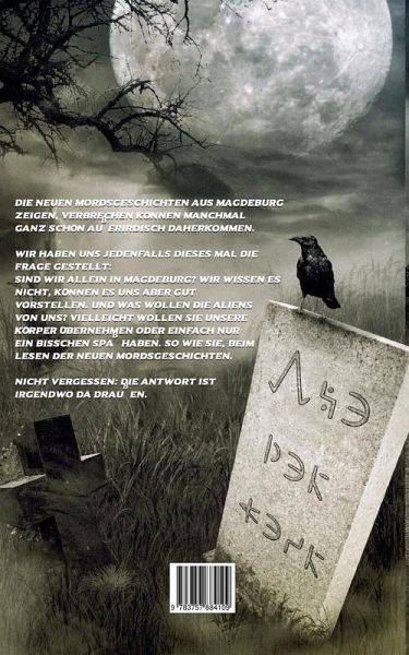 Die neuen Mordsgeschichten aus Magdeburg zeigen, Verbrechen können manchmal ganz schön außerirdisch daherkommen. Wir haben uns jedenfalls dieses Mal die Frage gestellt: Sind wir allein in Magdeburg? Wir wissen es nicht, können es uns aber gut vorstellen. Und was wollen die Aliens von uns? Vielleicht wollen sie unsere Körper übernehmen oder einfach nur ein bisschen Spaß haben. So wie Sie, beim Lesen der neuen Mordsgeschichten. Nicht vergessen: Die Antwort ist irgendwo da draußen.