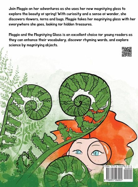 Join Maggie on her adventures as she uses her new magnifying glass to explore the beauty of spring! With curiosity and a sense of wonder, she discovers flowers, ferns, and bugs. Maggie takes her magnifying glass with her everywhere she goes, looking for hidden treasures. Maggie and the Magnifying Glass is an excellent choice for young readers as they can enhance their vocabulary, discover rhyming words, and explore science by magnifying objects.