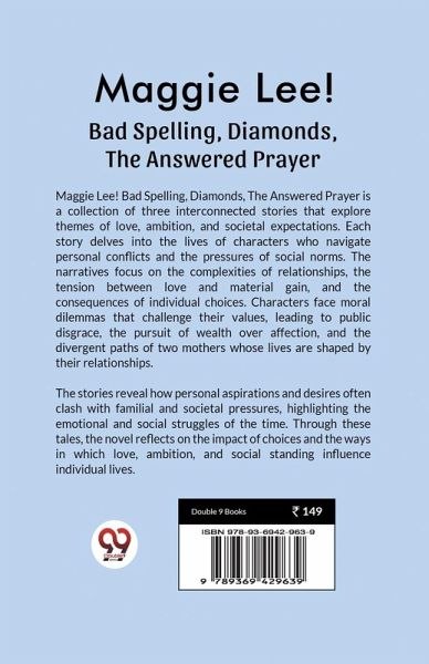 Maggie Lee! Bad Spelling, Diamonds, The Answered Prayer is a collection of three interconnected stories that explore themes of love, ambition, and societal expectations. Each story delves into the lives of characters who navigate personal conflicts and the pressures of social norms. The narratives focus on the complexities of relationships, the tension between love and material gain, and the consequences of individual choices. Characters face moral dilemmas that challenge their values, leading to public disgrace, the pursuit of wealth over affection, and the divergent paths of two mothers whose lives are shaped by their relationships. The stories reveal how personal aspirations and desires often clash with familial and societal pressures, highlighting the emotional and social struggles of the time. Through these tales, the novel reflects on the impact of choices and the ways in which love, ambition, and social standing influence individual lives.