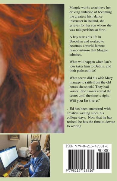 Maggie must rise above the psychological and physical challenges of a rape and near-death experience which creates constant nightmares of stalking. Her driving ambition is to become the greatest Irish dance instructor in Ireland while grieving for her son whom she was told perished at birth. Maggie is unaware of her son's adoption and his life in Brooklyn. Ian becomes the world-famous piano virtuoso that she admires. When Ian's tour takes him to Dublin, their paths will collide. Ian's wife, Mary, travels to Tuam and her presence shook some old bones. Many had voices! One whispers a secret that she will not reveal….. Until the time is right!