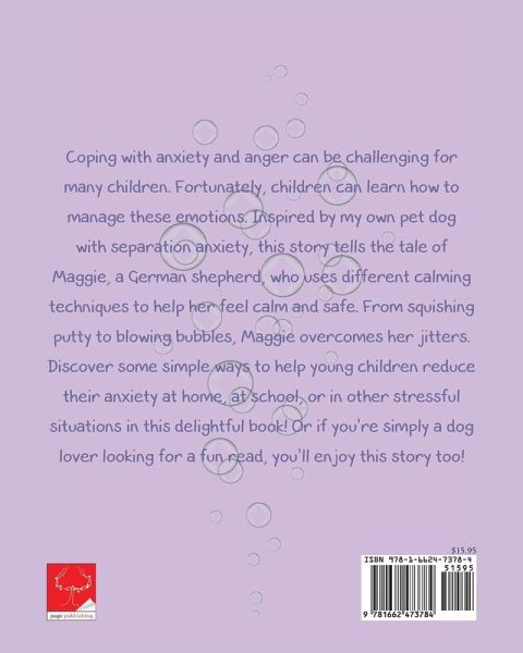Coping with anxiety and anger can be challenging for many children. Fortunately, children can learn how to manage these emotions. Inspired by my own pet dog with separation anxiety, this story tells the tale of Maggie, a German shepherd, who uses different calming techniques to help her feel calm and safe. From squishing putty to blowing bubbles, Maggie overcomes her jitters. Discover some simple ways to help young children reduce their anxiety at home, at school, or in other stressful situations in this delightful book! Or if you're simply a dog lover looking for a fun read, you'll enjoy this story too!