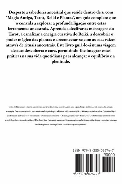 Desperte a sabedoria ancestral que reside dentro de si com "Magia Antiga, Tarot, Reiki e Plantas", um guia completo que o convida a explorar a profunda ligação entre estas ferramentas ancestrais. Aprenda a decifrar as mensagens do Tarot, a canalizar a energia curativa do Reiki, a descobrir o poder mágico das plantas e a reconectar-se com as suas raízes através de rituais ancestrais. Este livro guiá-lo-á numa viagem de autodescoberta e cura, permitindo-lhe integrar estas práticas na sua vida quotidiana para alcançar o equilíbrio e a plenitude.