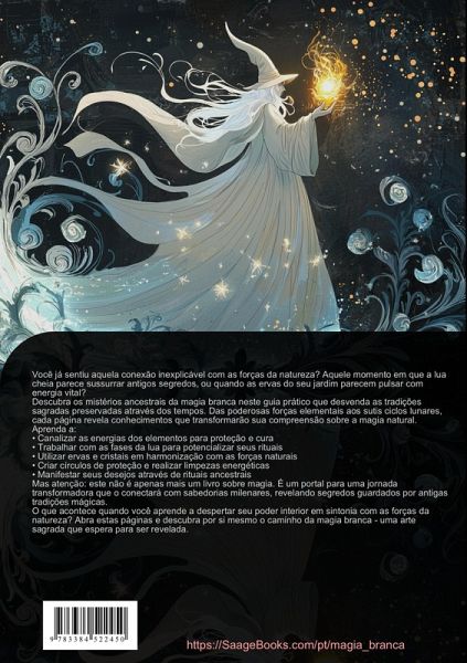 Descubra os segredos ancestrais da magia branca neste guia prático abrangente que combina tradição e conhecimento moderno.O livro apresenta uma jornada profunda pelos fundamentos da magia natural, começando com as origens históricas e princípios éticos essenciais. Você aprenderá sobre a importância do equilíbrio energético e as diferenças fundamentais entre as várias tradições mágicas.Explore capítulos dedicados à:- Magia dos elementos naturais (fogo, água, terra e ar)- Conhecimento detalhado sobre ervas mágicas e suas aplicações- Influência das fases lunares em rituais- Sabedoria antiga das runas e símbolos de proteção- Conexão com espíritos da natureza e entidades guardiãsO texto oferece instruções práticas para:- Rituais de proteção e limpeza energética- Práticas de cura natural e energética- Técnicas de manifestação e abundância- Celebrações dos ciclos naturais e festivais sazonaisCada capítulo inclui:- Orientações passo a passo para rituais- Informações sobre materiais e ferramentas mágicas- Correspondências naturais e elementais- Técnicas de meditação e visualizaçãoAprenda a trabalhar com:- Cristais e pedras mágicas- Ervas e incensos sagrados- Símbolos e sigilos de poder- Energias dos locais de poderEste guia respeita as tradições ancestrais enquanto oferece uma abordagem prática e acessível para o praticante moderno da magia branca, permitindo uma conexão profunda com as forças naturais e divinas.Este livro foi criado com o uso de tecnologias inovadoras, como Inteligência Artificial e ferramentas especialmente desenvolvidas - por exemplo, na geração de ideias, pesquisa, escrita, edição, garantia de qualidade e design de ilustrações decorativas.Desta forma, queremos oferecer-lhe uma experiência de leitura particularmente coerente, moderna e de ainda maior qualidade.