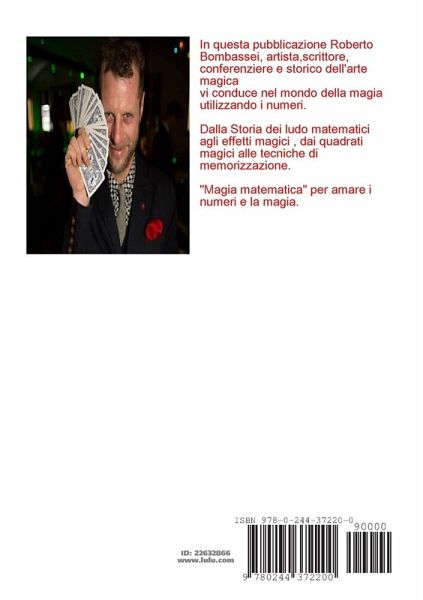 In questa pubblicazione Roberto Bombassei, artista,scrittore, conferenziere e storico dell'arte magica vi conduce nel mondo della magia utilizzando i numeri. Dalla Storia dei ludo matematici agli effetti magici , dai quadrati magici alle tecniche di memorizzazione. "Magia matematica" per amare i numeri e la magia.