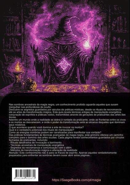 Bem-vindo ao guia mais abrangente sobre as artes ocultas e práticas mágicas negras. Este livro oferece uma exploração profunda dos mistérios ancestrais da magia negra, apresentando conhecimentos fundamentais e técnicas avançadas.A obra está estruturada em cinco seções principais:1. Fundamentos das Artes Obscuras- História e evolução da magia negra através dos tempos- Ferramentas rituais e materiais essenciais- Princípios energéticos fundamentais2. Práticas Rituais- Técnicas detalhadas de invocação- Metodologias do Voodoo- Procedimentos cerimoniais específicos3. Mecanismos de Ação- Magia de malefícios e proteção- Encantamentos amorosos- Técnicas de manipulação energética4. Especializações Mágicas- Necromancia e comunicação com espíritos- Magia de destruição- Transformação mágica e transmutação5. Caminhos de Desenvolvimento- Formação em magia negra- Áreas de especialização- Desenvolvimento do poder mágicoCada capítulo inclui gráficos detalhados, diagramas explicativos e instruções práticas. O texto apresenta tanto aspectos teóricos quanto aplicações práticas, permitindo uma compreensão profunda das artes obscuras.Atenção: Este livro contém informações potencialmente perigosas e destina-se apenas a praticantes sérios das artes ocultas. O autor não se responsabiliza pelo uso indevido das técnicas apresentadas.