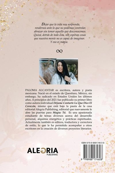 Este libro es un paseo a través de los diferentes matices del amor. Cada frase escrita aquí es una nota mental para la autora, y para cualquier corazón dispuesto a aceptarlas. En ellas descubrirá s la fragilidad de la vida, y el que a veces es imprescindible romperse toda para ver la claridad desde otro enfoque. Deseo que de la mano de la poesía, te reconcilies con el corazón y le abras la puerta a esta energía en todas sus formas.