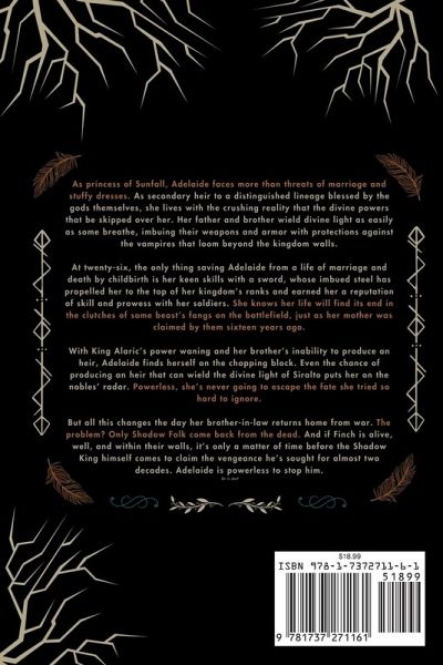 Forgotten by the gods, Adelaide forges her power in the sweet judgment of the sword - her only weapon against the shadow folk that would burn her kingdom to ashes and feast upon its people. As princess of Sunfall, Adelaide faces more than threats of marriage and stuffy dresses. As secondary heir to a distinguished lineage blessed by the gods themselves, she lives with the crushing reality that the divine powers that be skipped over her. Her father and brother wield divine light as easily as some breathe, imbuing their weapons and armor with protections against the vampires that loom beyond the kingdom walls. At twenty-six, the only thing saving Adelaide from a life of marriage and death by childbirth is her keen skills with a sword, whose imbued steel has propelled her to the top of her kingdom's ranks and earned her a reputation of skill and prowess with her soldiers. She knows her life will find its end in the clutches of some beast's fangs on the battlefield, just as her mother was claimed by them sixteen years ago. With King Alaric's power waning and her brother's inability to produce an heir, Adelaide finds herself on the chopping block. Even the chance of producing an heir that can wield the divine light of Siralto puts her on the nobles' radar. Powerless, she's never going to escape the fate she tried so hard to ignore. But all this changes the day her brother-in-law returns home from war. The problem? Only Shadow Folk come back from the dead. And if Finch is alive, well, and within their walls, it's only a matter of time before the Shadow King himself comes to claim the vengeance he's sought for almost two decades. Adelaide is powerless to stop him. Or is she? Magic Bites is the first in the Tales of the Shadow Folk. Perfect for fans of dark, epic romantasies with slow burn, enemies-to-lovers romances, Magic Bites has plenty of twists and turns in store. Do you dare to fight back against the Shadow Folk? Or will you, too, be swept away by sweet, simmering lies and sultry fangs?