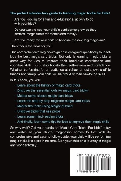 Magic has always been a source of wonder and amazement, capturing the imagination of people, young and old. And what better way to introduce children to this fascinating world than through the magic of card tricks? "Magic Card Tricks For Kids" is a comprehensive beginner's guide that will teach your child how to perform amazing card tricks that will astound their friends and family. Whether they're a complete beginner or have already dabbled in magic, this book is perfect for kids of all ages and skill levels. Your child will learn everything from basic sleights of hand to more advanced tricks while building their confidence and developing their magic skills. So, if you're looking to introduce your child to the world of magic, look no further. "Magic Card Tricks For Kids" is the perfect guide to help your child unleash their inner magician. So, prepare for a journey of magic and wonder, where the impossible becomes possible, and the unbelievable becomes believable.
