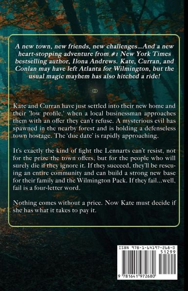 A new town, new friends, new challenges.... And a new heart-stopping adventure from #1 New York Times bestselling author, Ilona Andrews. Kate, Curran, and Conlan may have left Atlanta for Wilmington, but the usual magic mayhem has also hitched a ride! Kate and Curran have just settled into their new home and their 'low profile,' when a local businessman approaches them with an offer they can't refuse. A mysterious evil has spawned in the nearby forest and is holding a defenseless town hostage. The 'due date' is rapidly approaching. It's exactly the kind of fight the Lennarts can't resist, not for the prize the town offers, but for the people who will surely die if they ignore it. If they succeed, they'll be rescuing an entire community and can build a strong new base for their family and the Wilmington Pack. If they fail...well, fail is a four-letter word. Nothing comes without a price. Now Kate must decide if she has what it takes to pay it.