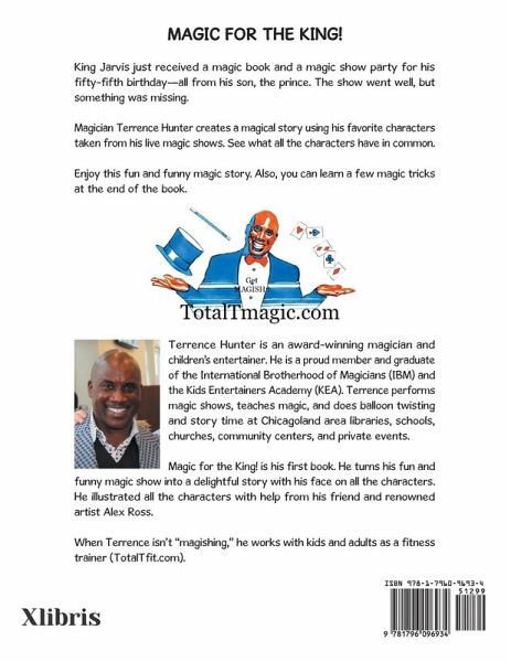 Magic for the King! King Jarvis just received a magic book and a magic show party for his fifty-fifth birthday-all from his son, the prince. The show went well, but something was missing. Magician Terrence Hunter creates a magical story using his favorite characters taken from his live magic shows. See what all the characters have in common. Enjoy this fun and funny magic story. Also, you can learn a few magic tricks at the end of the book.