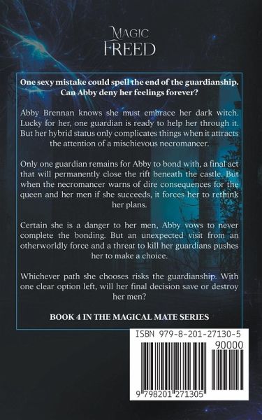 One sexy mistake could spell the end of the guardianship. Abby Brennan knows she must embrace her dark witch. Lucky for her, one guardian is ready to help her through it. But her hybrid status complicates Abby's life further when it attracts the attention of a mischievous necromancer. Only one guardian remains for Abby to bond with, a final act that will permanently close the rift beneath the castle. But when the necromancer warns of dire consequences for the queen and her men if she succeeds, it forces her to rethink her plans. Certain she is a danger to her men, Abby vows to never complete the bonding. But an unexpected visit from an otherworldly force and a threat to kill her guardians pushes her to make a choice. Whichever path she chooses risks the guardianship. With one clear option left, will her final decision save or destroy her men? Magic Freed is the fourth book in the Magical Mate series. The series is dark paranormal romance for readers 18+. It features four sexy, damaged Irish males, a heroine who's lost but determined to take control of her life, and a slow burn romance stuffed with magical dilemmas and delicious tension.