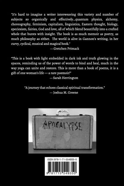 It's hard to imagine a writer interweaving this variety and number of subjects so organically and effectively: quantum physics, alchemy, choreography, feminism, capitalism, linguistics, Druids Eastern thought, biology, speciesism, fairies, God and love, all of which blend beautifully into a crafted whole that bursts with insight. The book is as much memoir as poetry, as much philosophy as either. Those of us who know and admire Sharon Gannon in any of her numerous incarnations - yoga master, vegan crusader, singer, dancer, poet, muse - know that when we pick up her latest book there will be penetrating reflections on the universe, mirrors held up to our follies, and valuable insights into navigating the human condition. This book elucidates the kind of wry journeyer wit that we find in concept albums such as The Band's Big Pink, Dylan's John Wesley Harding or the Beatles's Sgt. Pepper. Sharon challenges readers to see themselves in her confrontations with the world, to move with her away from conditioned life, to breathe with her the clear air that fills the lungs of the jivan-muktas, spirits who are free even while still in physical form. This book tells of a journey that echoes classical spiritual transformation with a voice that is personal, revealing, and vulnerable.