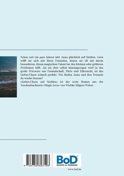 Schon seit ein paar Jahren lebt Anna glücklich auf Sizilien. Gern trifft sie sich mit ihren Freunden, denen sie oft mit ihrem besonderen, ihrem magischen Talent bei den kleinen oder größeren Problemen hilft. Als sie aber selbst hineingezogen wird in das große Wirrwarr aus Freundschaft, Flirts und Eifersucht, ist das Liebes-Chaos schnell perfekt. Wie finden Anna und ihre Freunde da wieder heraus? »Liebes-Chaos auf Sizilien« ist der erste Roman aus der Taschenbuchserie »Magic Love« von Wiebke Hilgers-Weber.