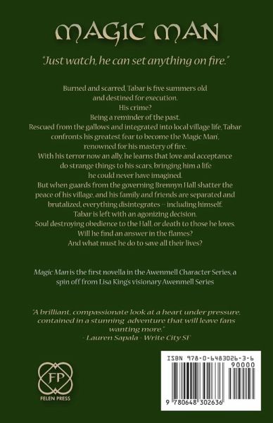 "Just watch, he can set anything on fire." Burned and scarred, Tabar is five summers old and destined for execution. His crime? Being a reminder of the past. Rescued from the gallows and integrated into local village life, Tabar confronts his greatest fear to become the 'Magic Man', renowned for his mastery of fire. With his terror now an ally, he learns that love and acceptance do strange things to scars, bringing him a life he could never have imagined. But when guards from the governing Brennyn Hall shatter the peace of his village, and his family and neighbors are separated and brutalized, everything disintegrates-including himself. Tabar is left with an agonizing decision. Soul destroying obedience to the Hall, or death to those he loves. Will he find an answer in the flames? And what must he set on fire to save all their lives? Magic Man is the first novella in the Awenmell Character Series, a spin off from Lisa King's visionary fantasy Awenmell Series.For lovers of James Redfield and Paulo Coelho; if you enjoy thought provoking tales of growth and courage against the odds, you're sure to love this inspiring tale of honesty and redemption in the face of heart-breaking adversity.Buy your copy now!