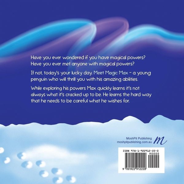 Have you ever wondered if you have magical powers? Have you ever met anyone with magical powers? If not, today's your lucky day. Meet Magic Max - a young penguin who will thrill you with his amazing abilities. Exploring his powers Max quickly learns it's not always what it's cracked up to be. He learns the hard way that he needs to be careful what he wishes for.