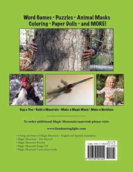 As part of an educational program designed for Pre-K - 5th grades, ages 4 - 11, students can use this entertaining Activity-Coloring book as a companion guide to A SONG AND STORY OF MAGIC MOUNTAIN making paper dolls of the boy and girl, coloring Magic Mountain pictures, exploring mazes, solving word puzzles, learning about hiking and developing an intimate relationship with nature, making crafts from found objects. These activities are tailored to strengthen Figural, Symbolic and Semantic abilities at various age and grade levels and to support students in visual, auditory and memory development.