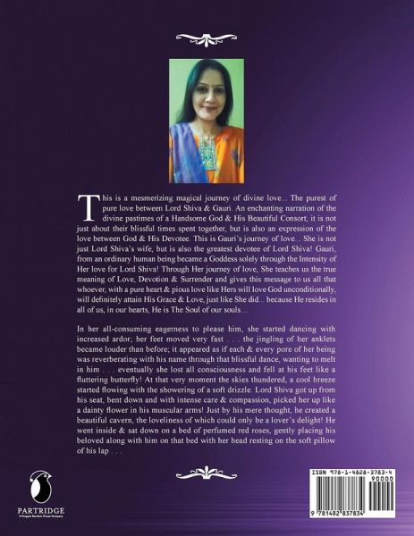 This is a mesmerizing magical journey of divine love... The purest of pure love between Lord Shiva & Gauri. An enchanting narration of the divine pastimes of a Handsome God & His Beautiful Consort; it is not just about their blissful times spent together, but is also an expression of the love between God & His Devotee. This is Gauri's journey of love... She is not just Lord Shiva's wife, but is also the greatest devotee of Lord Shiva! Gauri, from an ordinary human being became a Goddess solely through the Intensity of Her love for Lord Shiva! Through Her journey of love, She teaches us the true meaning of Love, Devotion & Surrender and gives this message to us all that whoever, with a pure heart & pious love like Hers will love God unconditionally, will definitely attain His Grace & Love, just like She did... because He resides in all of us, in our hearts, He is The Soul of our souls...In her all-consuming eagerness to please him, she started dancing with increased ardor; her feet moved very fast . . . the jingling of her anklets became louder than before; it appeared as if each & every pore of her being was reverberating with his name through that blissful dance, wanting to melt in him . . . eventually she lost all consciousness and fell at his feet like a fluttering butterfly! At that very moment the skies thundered, a cool breeze started flowing with the showering of a soft drizzle. Lord Shiva got up from his seat, bent down and with intense care & compassion, picked her up like a dainty flower in his muscular arms! Just by his mere thought, he created a beautiful cavern, the loveliness of which could only be a lover's delight! He went inside & sat down on a bed of perfumed red roses, gently placing his beloved along with him on that bed with her head resting on the soft pillow of his lap . . .
