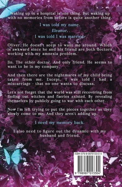 Waking up in a hospital is one thing. But waking up with no memories from before is quite another thing. I was told my name. Eleanor. I was told I was married. Oliver. He doesn't seem to want me around. Which is awkward since he and his friend are both doctors working with my amnesia problem. Jin. The other doctor. And only friend. He seems to want to be in my company. And then there are the nightmares of my child being taken from me. Except, I was told I had a miscarriage - that no one wants to discuss. Let's not forget that the world was still recovering from finding out witches and faeries existed. By revealing themselves by publicly going to war with each other. Now I'm left trying to put the pieces together as they slowly come to me. And they aren't adding up. I need my memory back. I also need to figure out the dynamic with my husband and friend. * * * Author's Note: - This is a story where the female has more than one love interest without choosing between them. - Content Warning: Miscarriage (mentioned) and kidnapping?