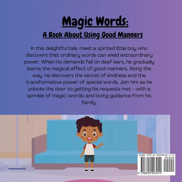 In this delightful tale, meet a spirited little boy who discovers that ordinary words can wield extraordinary power. When his demands fall on deaf ears, he gradually learns the magical effect of good manners. Along the way, he discovers the secret of kindness and the transformative power of special words. Join him as he unlocks the door to getting his requests met-with a sprinkle of magic (words) and loving guidance from his family.
