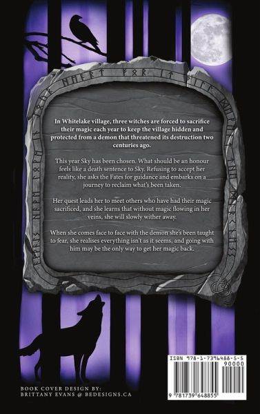 In Whitelake village, three witches are forced to sacrifice their magic each year to keep the village hidden and protected from a demon that threatened its destruction two centuries ago. This year Sky has been chosen. What should be an honour feels like a death sentence to Sky. Refusing to accept her reality, she asks the Fates for guidance and embarks on a journey to reclaim what's been taken. Her quest leads her to meet others who have had their magic sacrificed, and she learns that without magic flowing in her veins, she will slowly wither away. When she comes face to face with the demon she's been taught to fear, she realises everything isn't as it seems, and going with him may be the only way to get her magic back.
