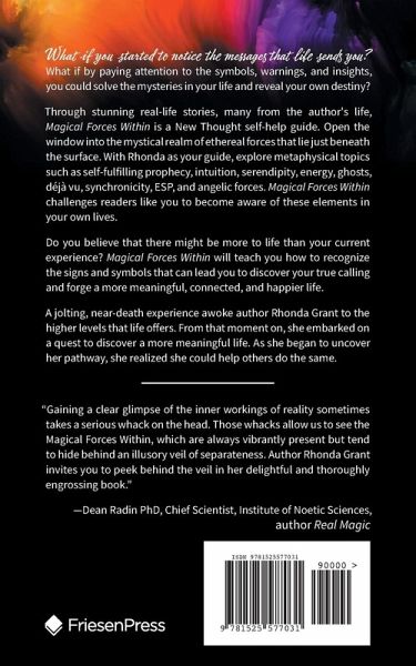 What if you started to notice the messages that life sends you? What if by paying attention to the symbols, warnings, and insights, you could solve the mysteries in your life and reveal your own destiny? Through stunning real-life stories, many from the author's life, Magical Forces Within is a New Thought self-help guide. Open the window into the mystical realm of ethereal forces that lie just beneath the surface. With Rhonda as your guide, explore metaphysical topics such as self-fulfilling prophecy, intuition, serendipity, energy, ghosts, déjà vu, synchronicity, ESP, and angelic forces. Magical Forces Within challenges readers like you to become aware of these elements in your own lives. Do you believe that there might be more to life than your current experience? Magical Forces Within will teach you how to recognize the signs and symbols that can lead you to discover your true calling and forge a more meaningful, connected, and happier life....